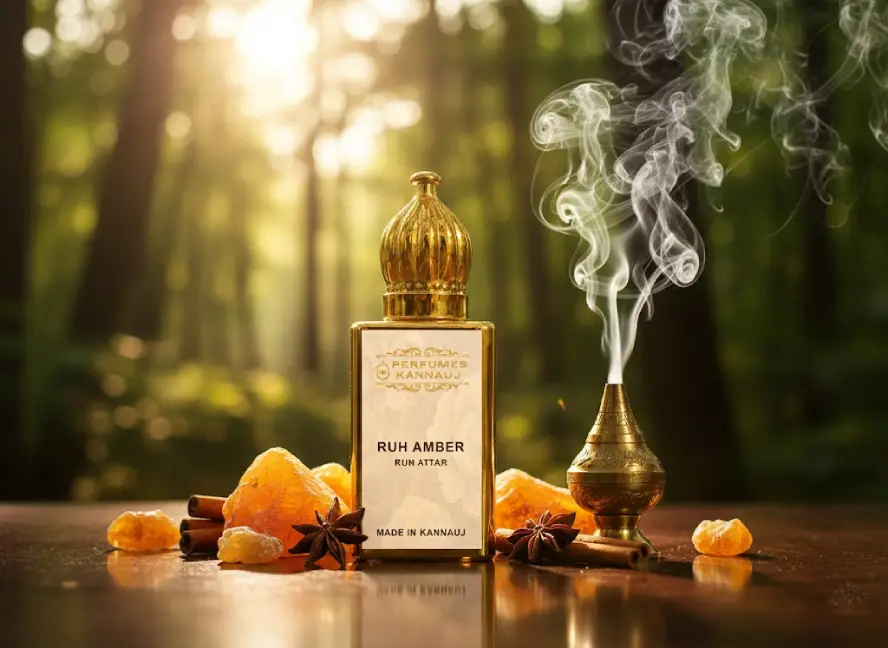 Ruh Amber attar, natural amber perfume, premium amber fragrance, Kannauj amber attar, long-lasting resinous attar, luxury oriental perfume.